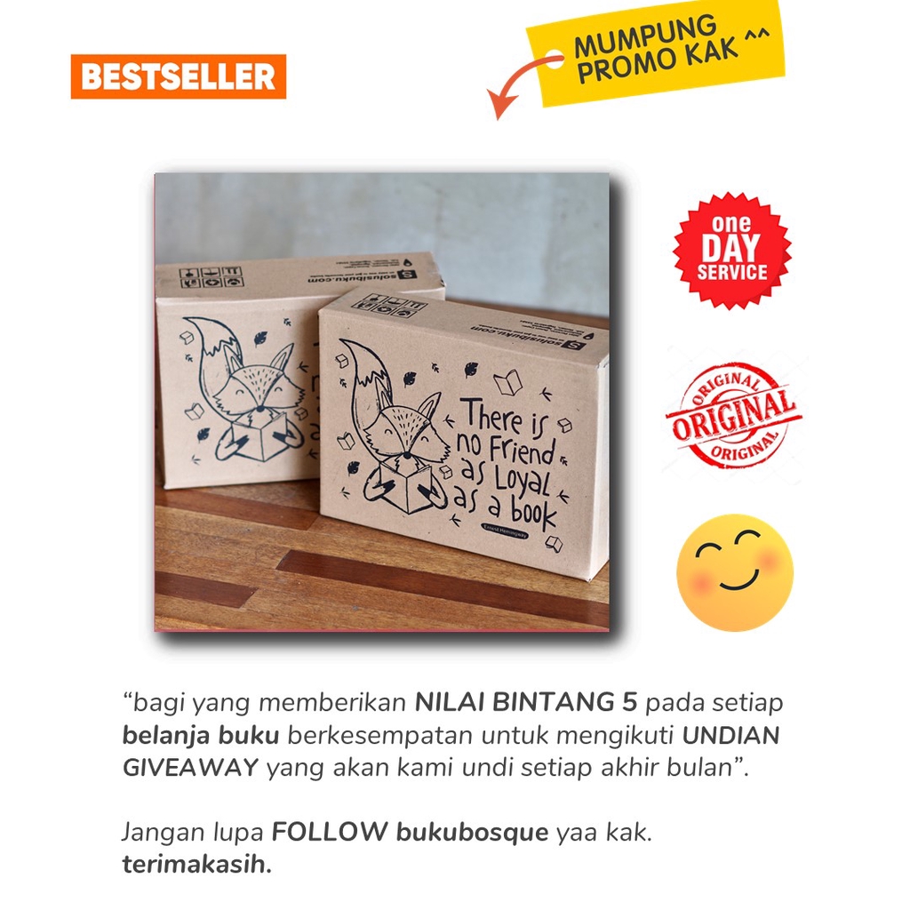 Mari Bosque bisa dipilih tambahannya : 1. Boxset + Bubble Wrap (Xtra Aman) 2. Boxset Ekskulisf ( Keren) 3. Bubble Wrap (Aman)Semua Produk di Bukubosque belum menggunakan bubble warp dan BoxsetJika paket ingin aman silahkan tambahkan bersama dengan produk yang diorder. ..Catatan:1. Pesanan akan dikirim pada hari yang sama (order setelah jam 15.00 akan tetap kita packing namun ikut pengiriman esok hari)2. Hanya menjual buku ORIGINAL dengan HARGA TERMURAH karena kami distributornya langsung.3. Buku 100% Ready Stok, silahkan bisa langsung di-order ^^4. Resi akan berjalan 1-2x24 jam (bersama pak kurir yang sedang bekerja) ^^5. Siap menerima pesanan PAKET BESAR, R E S E L L E R dan D R O P S H I P silahkan chat mimin ^^6. 2.5% dari hasil penjualan akan kita salurkan ke yang membutuhkan dalam bentuk buku bacaan ^^Have a nice day kak ^^#buku #bukubosque #bukuoriginal #bukumurah #bukudiskon #bukubestse
