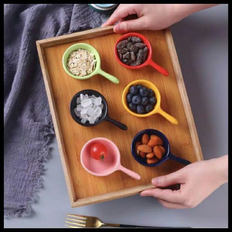 SUDAH TERMASUK BUBBLE WRAP!!! Tempat sambal unik dengan tangkai pegangan, dari bahan keramik.Cocok untuk pelengkap meja makan untuk diisi aneka sambal. Dengan bentuknya yang mungil tidak boros tempat saat ditempatkan di meja makan.Size:- Diameter 6.2 cm- Panjang keseluruhan 10.2 cm- Tinggi 2.3 cm- Kapasitas 40mlTolong tanyakan ketersediaan warna sebelum order.TqTIDAK ADA ASURANSI PENGIRIMAN DI SHOPEE, PECAH AKIBAT PENGIRIMAN NO RETUR NO REFUND, DARI PENJUAL SUDAH DIBUNGKUS SANGAT TEBAL TAPI JIKA DIBANTING DENGAN KERAS DI EKSPEDISI TETAP RAWAN PECAH, ORDER = SETU