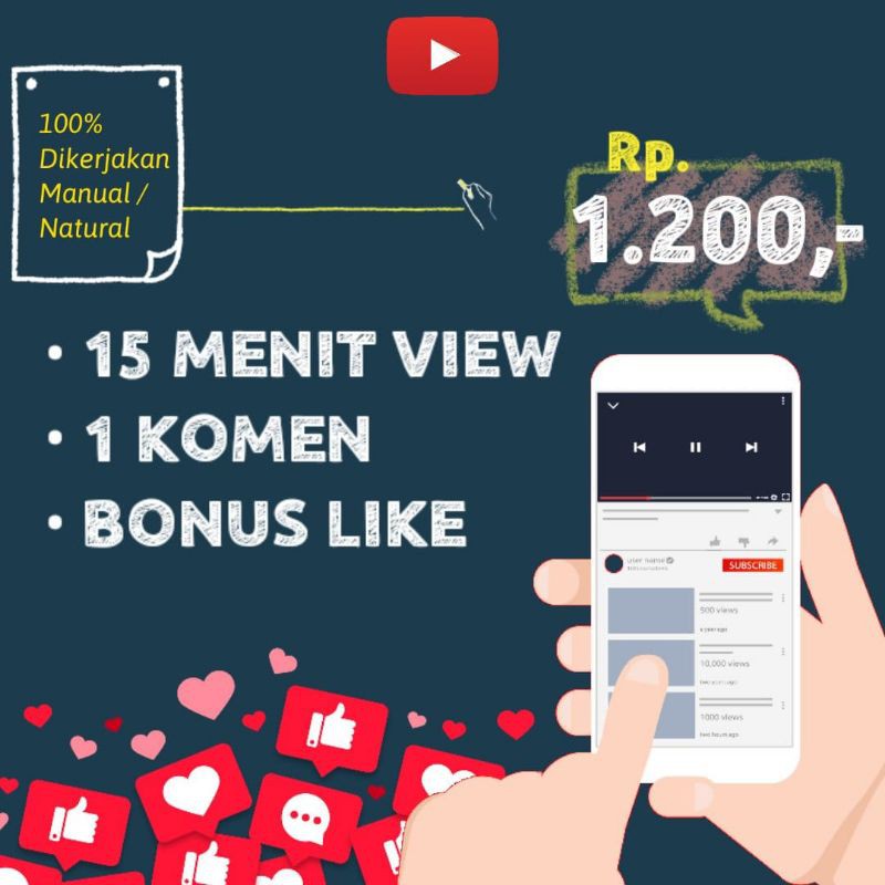 terbukti membantu channel dr awal sampai Monet, silahkan baca ulasan dan penilaian toko bukan ulasan produk Krn produk kami ganti tiap 2 Minggu sekali. akun kami berjumlah hanya 100 , akun real, semua bergambar foto profil dan semua akun terverifikasi. kami kerjakan manual manusia dg kecepatan normal tanpa bot tanpa software. dengan rp.1200 anda akan mendapat 15menit jam tayang, 1 komentar(komen sesuai isi konten) dan bonus like. min order 50 .info lain silahkan chat y