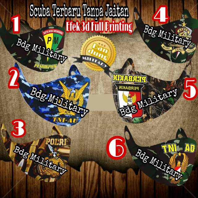 Masker Non Medis Semi Scuba Terbaru TANPA JAITAN Full Printing Kesatuan Bahan Real Scub StreachTechLembut Adem dan Tebal Gramasi 280/300 WaterProof Anti Debu Anti Virus ANTI LUNTUR DIKARENAKAN KAMI MENGGUNAKAN TINTA PRINT ORIGINAL EFSON JDI GAMBAR 3d Lebih Jelas dan AWET TAHAN LAMA..ANTI PECAH PADA GAMBAR DIKARENAKAN BEDA SEPERTI SABLON.YANG MENGGUNAKAN CAT OPLOSAN ...READY MOTIF YANG DI GAMBAR 1. POLISI MILITER / PM2. TNI AU LORENG3. POLRI4. ARMED LORENG5. PERBAKIN6. TNI AD LORENG7. KOSTRAD LORENG8. KOMANDO BARET MERAH9. KOPASSUS10. MINORFIGHTER11. STREETFIGHTERS12. BRIMOB API13. BRIMOB KORPS COKLAT14. BRIMOB AIR BIRU15. INFANTERI16. RAIDER 17. KORPS MARINIR 18. PEMUDA PANCASILA LORENG19. INDONESIA ARMY20. PEMUDA PANCASILA NKRI21. CAMO FLASE22. PRAMUKA NKRI LORENG23. BASARNAS SAR24. BPBD HALILINTAR25. SATPOL PP BESI26. KEMENHAN LOGO LORENG27. KEMENHAN BELA NEGARA MERAH PUTIHKHUSUS NO.24. BPBD CUSTOME Minim 3 lusin25. POL PP CUSTOME Minim 3 lusin26 & 27 Khusus Hanya Custome Saja..Custome Karakter Khusus Kesatuan dan.Perusahaan Ya Bosku MINIM 3 lusin.PertamaAmbil Satuan Bisa Yang READY SAJA, Ambil Lusinan Minimal 2 Lusin Di Harga 180'000 Masuk Harga Grosir Di Atas 10 Lusin Tetap Sam Harganya Limited Edition Spesial Produk Terbaru Kami di