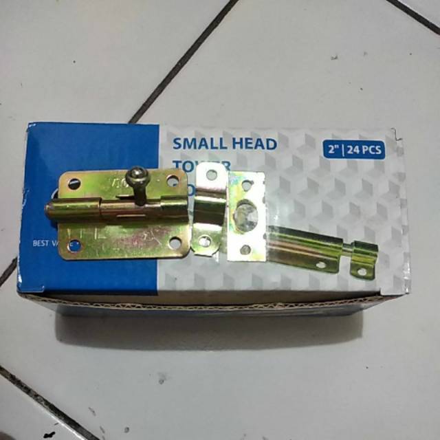 Grendel atau slot pintu ukuran 2" warna kuning, dilengkapi dengan s