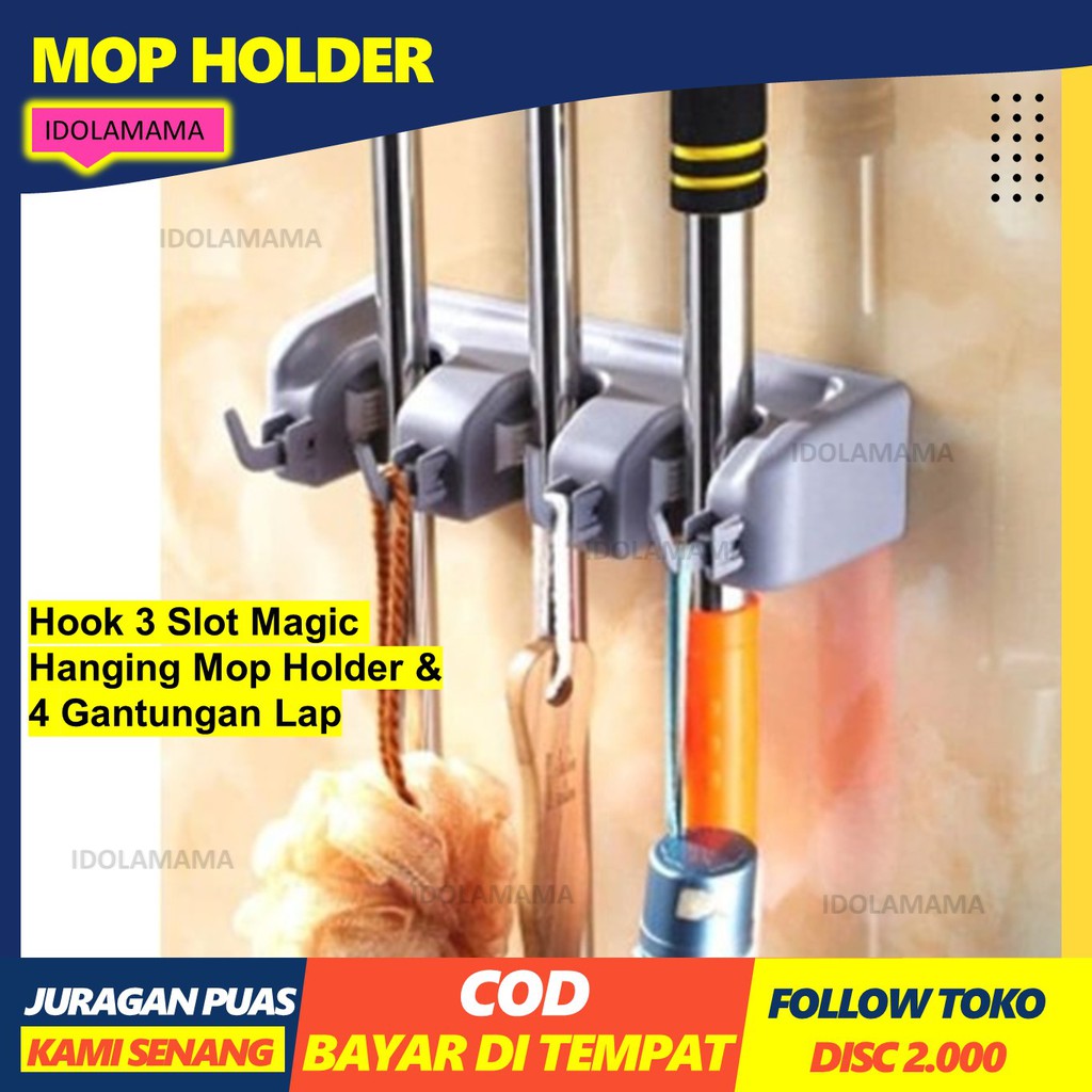 Toko Grosir Perlengkapan di Kabupaten Kotawaringin Timur Gantungan Sapu Alat Pel Dengan Hook 3 Slot Magic Hanging Mop Holder Im39 dari Tidak Ada Merek Kota Surabaya