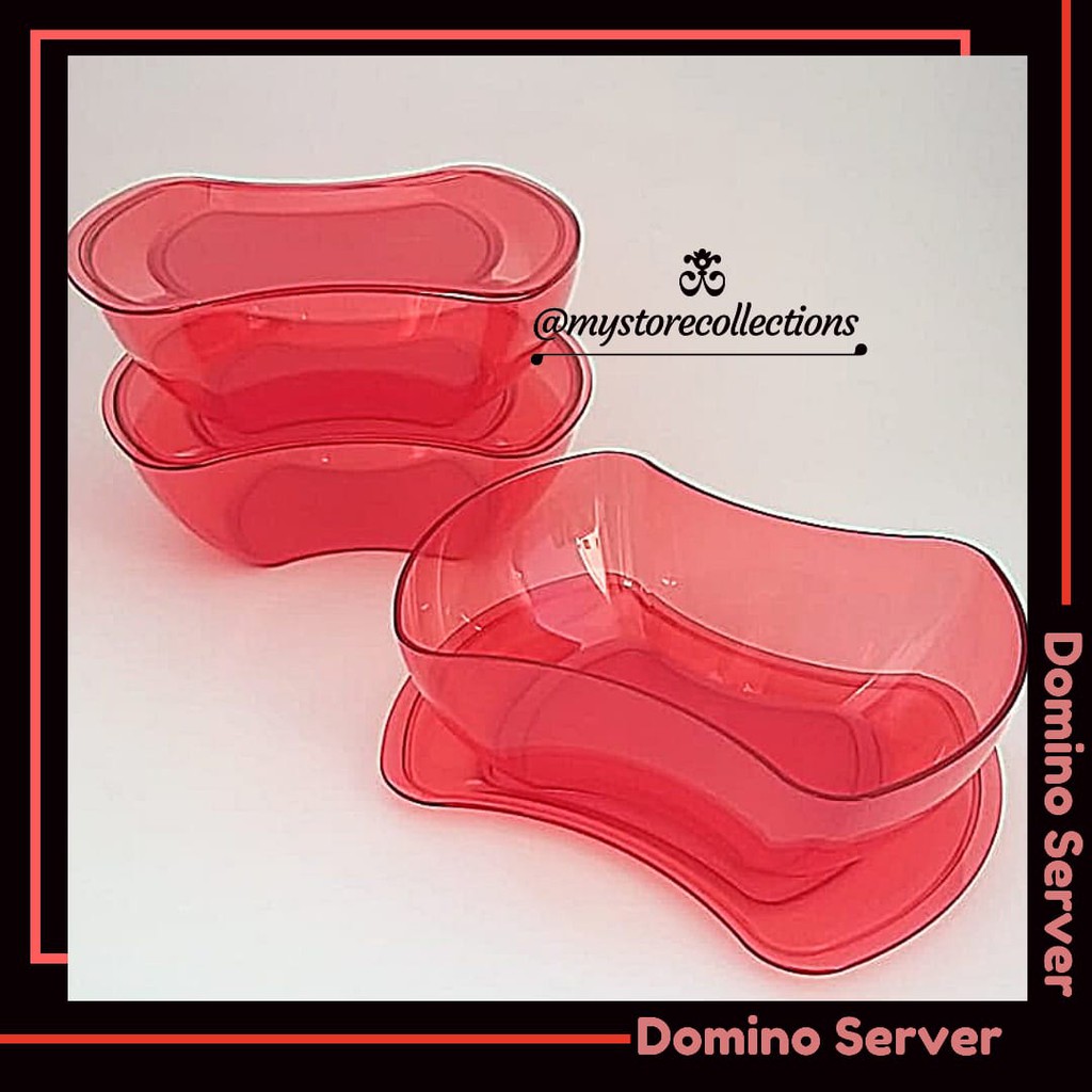 Domino Server (1 Pcs) TupwrUkuran:1,2L/ 22 x 17 x 7,5 cmWaktu makan bersama semakin ditunggu dengan set penyaji hidangan yang istimewa seperti Domino . Bentuknya yang unik memungkinkan Anda untuk berkreasi dengan tatanan meja. Makanan apapun terasa semakin menarik dengan Domino Set yang mewah.Fitur Domino :1. Wadah transparan sebening kristal, sangat elegan.2. Makanan dan minuman di dalam wadah terlihat sehingga menambah menariknya tampilan wadah. Wadah transparan juga memudahkan melihat makanan atau minuman apa yang ada di dalamnya.3. Cover bisa digunakan sebagai tutup dan juga sebagai alas.Keistimewaan :•Terbuat dari PC yang tidak mudah retak atau pecah dan tidak meninggalkan noda. Material ini juga menghasilkan base hijau transparan sehingga dapat menampilkan kesan produk yang elegan.•Bentuknya unik sehingga cocok dengan berbagai bentuk meja makan (bulat, bujur sangkar, ataupun kotak memanjang)•Aman untuk menghangatkan makanan/minuman dalam microwave.•Dilengkapi dengan cover yang dapat juga berfungsi sebagai piring penyaji buah-buah segar ataupun kue-kue jajanan pasar.•Sangat ideal sebagai wadah penyajian berbagai makanan tumisan, gorengan bahkan makanan lain yang berkuahNB : MOHON TANYAKAN KETERSEDIAAN BARANG TERLEBIH D