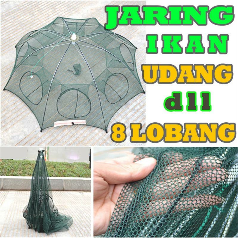Mumpung masih ada.ALAT PENDAMPING PANCING.Jebakan udang / ikan model payung lubang 8.Biar nggak susah2 cari umpan buat mancing atau pakan ikan predator.Tinggal kasih umpan ke dalam jaring, udang dan ikan akan m