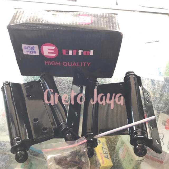 Engsel Koboi / Per 4”Harga adalah per pasangUkuran : 4 inch Fungsi engsel per koboi adalah untuk membuat pintu berayun 2 arah. Biasanya pintu yang menggunakan engsel per koboi ini bisa ditemui di berbagai restoran maupun kafe sehingga memudahkan pelayanan maupun pengunjung saat lewat.Engsel ini menggunakan tekanan per didalamnya sehingga pintu dapat berayun tanpa harus ditarik.* Jika merk diatas kosong makanakan kami kirimkan merk lain yang memiliki kualitas