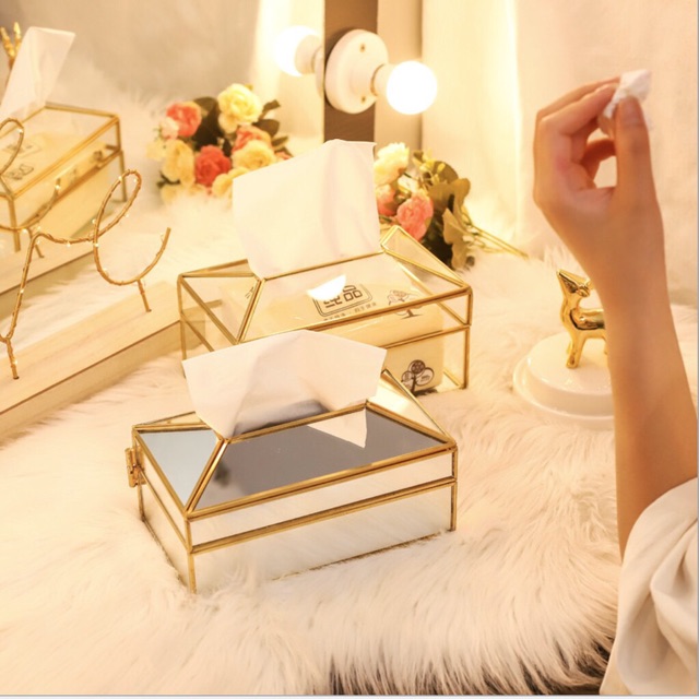 Elevate your table with a golden brass tissue box Available in clear glass & mirror glass Both equally luxuriousMedium: 19 x 12.5 x 11 cmLarge: 23 x 12.5 x 11 cm Packing includes: custom styrofoam + box To ensure your package arrives safely please add either :- air bag bubble packing https://shopee.co.id/Air-Bag-Bubble-Packing-i.145830220.7646084286- wooden packing https://shopee.co.id/Wooden-Packing-Packing-Kayu-i.145830220.6846067072All products will be bubble-wrapped according to our safety standard, but we strongly suggest you to add extra packing for deliveries outside of Jakarta (especially for long distance tr