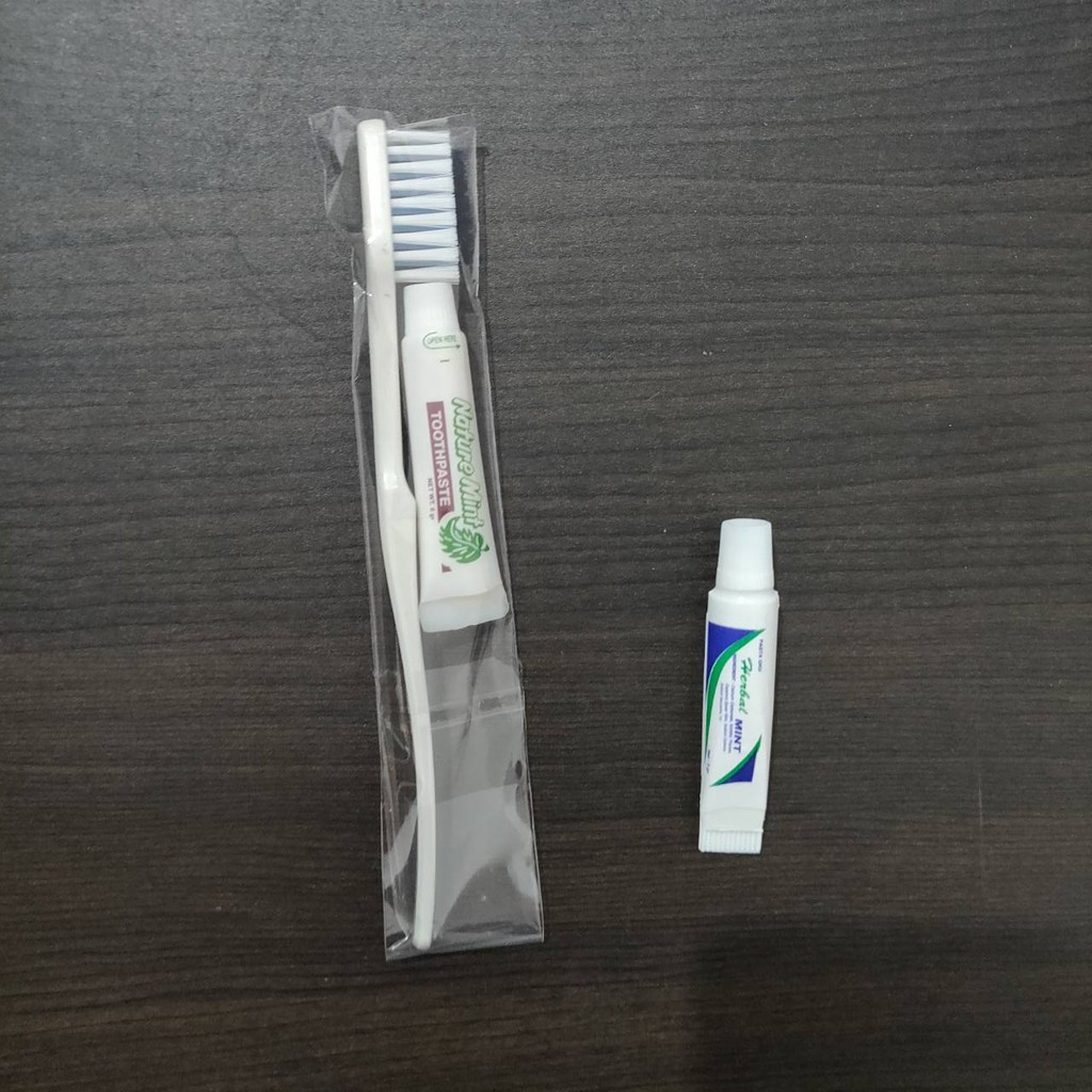 dental kit hotel sikat bulu halus putih biru + odol naturemint / herbalmint BPOM + plastik opp be