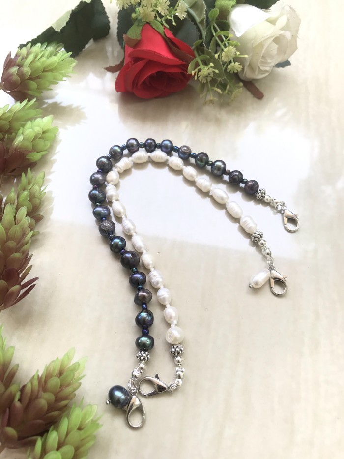 Connector masker hijab dari mutiara asli air tawar Besar mutiara kurleb 8-10mmPanjang kurleb 22cmYang mau di pake buat gelang info ya mau panjang brp cm.Bisa di buat gelangCocok untuk kado krn elegan dan etnikKait udang size 14Tali tidak melar karena konektor sudah panjang sehingga awet digunakan karena tidak mudah p